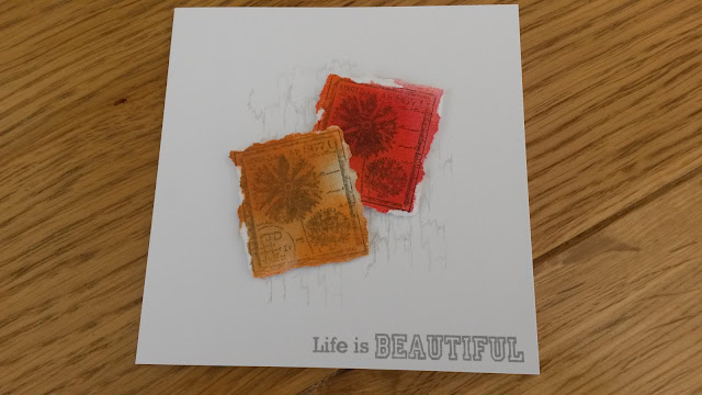 I started by stamping hobby art's cracked paint background in châteaux grey versa ink, then stamped crafty individuals floral postage stamp in DI using second generation stamping for a more faded look. I inked both images with different coloured distress inks and tore round the edges. They are mounted using 3d foam mount squares and the sentiment is another from crafty individuals. As well as Casology, I would like to enter this in to the craft barn's less is more challenge with flowers as there are flowers on the stamps :)