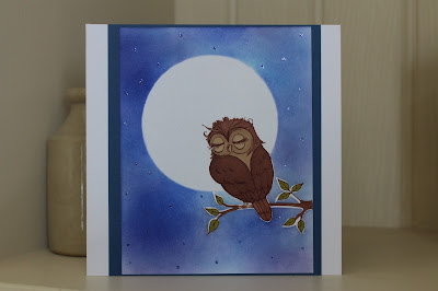 There was a bit of masking involved, I stamped the owl first, masked it, then stamped the branch and masked that, then finally masked the moon before inking the background. The card is coloured with promarkers and finished with 'starry night' stickles. Well, it seemed appropriate!