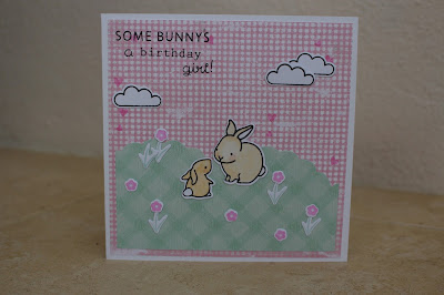 It is always hard making a card for a fellow card maker - especially when it's your Mum! I wanted to use the bunnies (although they are from the 'hello baby' set) as Mum has two bunnies of her own and I knew she would like them. I also think it looks like a mum and daughter bunny!!!